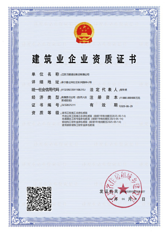 • 萬順集團(tuán)晉升為江蘇省二級(jí)資質(zhì)建筑單位2015-02-28